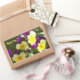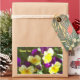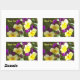 Este adesivo apresenta um cheio fotográfico de picos roxos e amarelos sobre um fundo verde. No canto superior esquerdo estão as palavras, "Obrigado". Diga, "obrigado você" adicionando este adesivo a um envelope de pacote.