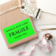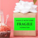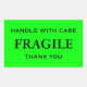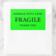 Vinhetas com: Frágil. Manipule com cuidado. Obrigado. Texto preto sobre fundo de verde limão. Personalize com suas informações usando os modelos fáceis. A cor da fonte, o estilo da fonte, o tamanho da fonte e a cor de fundo do verde limão são personalizáveis.