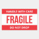 Protect your packages with this bold “Fragile – Handle With Care – Do Not Drop” shipping sticker. Designed in high-visibility red and white, this warning label clearly alerts carriers and handlers that your shipment contains delicate contents.