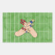 Este autocolante é impresso com um trabalho de arte com a mão, com um design de futebol. Duas mãos têm dedos entrelaçados e estão "vestidas" em uniformes de futebol para representar o sinal ASL para FOTBALL. O fundo é um campo de futebol verde e exuberante.