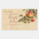 Etiqueta de estilo vintage para doces e geleias com ilustração de maçãs vermelhas e amarelas num galho com folhas verdes, feita de uma pintura antiga em cartão-postal, com rolhas e texto castanhos. A data pode ser deixada para escrevendo a data ou alterar o texto pontilhado para o ano que você precisar.