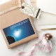 Uma imagem estilizada em tons azuis e branca da Terra e Lua iluminada de volta pelo sol. Uma tradução em inglês do Gênesis 1:4 lendo "Deus viu que a luz era boa, e Deus dividiu a luz da escuridão" também aparece em azul e branco brilhantes.