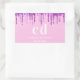 Adesivo Retangular Glitter cor-de-rosa goteja o nome roxo