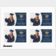 Adesivo Retangular Graduação de Foto Dourada Clássica Azul Obrigado