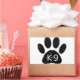 Um texto e impressão de pata de cão com estilo de desenho animado, com efeito de resmungão e ressonância aplicado à imagem. Disponível em diferentes produtos.