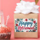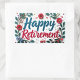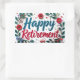 A vibrant, celebratory scene unfolds as colorful flowers and leaves gracefully sway in a gentle breeze. The cheerful text 'Happy Retirement' stands out, adorned with sparkling confetti and ribbons. A slow pan across the arrangement reveals intricate details of the floral elements, while warm, diffused lighting enhances the joyful atmosphere. The composition feels festive and inviting, perfect for a retirement celebration.