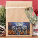 Libere o espírito assustador com esta design sombria do Dia das Bruxas apresentando um bando de cachorros sob um céu escuro e iluminado, cercado por morcegos voadores e abóboras brilhantes. Perfeito para aqueles que amam um toque de diversão terrível com seus amigos peludos!