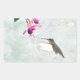 Os beija-flores com garganta rubi se reúnem ao longo da Costa do Golfo durante os meses de agosto e setembro, preparando sua migração anual para sua casa de inverno no México. Enquanto preparam buscam néctar flores cheias de plantas como a fuschia e a vinha de trompete para alimentá-las em sua viagem. Esta design apresenta uma rubi-garganta feminina a aproximar-se de um florescimento de fuschia rosa e roxo tentador.