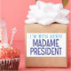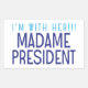 "Estou com ela! (EN) Senhora Presidente" é uma homenagem a Kamala Harris, o Democrata para Presidente nas Eleições de 2024. Criado pelo Monkey Business Graphic Design, 2024.