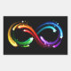Symbol of infinity is artistically painted with fast moving, bright, luminous, rainbow colored comets with long flexible tails on black background. Rainbow infinity.