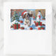 Adesivo Retangular Inglês a correr em neve com chapéu de Natal