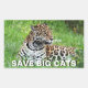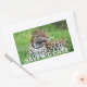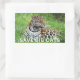 Vinheta retangular com uma imagem de uma onça-pintada bonita deitada na grama e uma mensagem opcional importante. A onça é uma espécie quase ameaçada e seu número está diminuindo. Veja toda a coleção Nature & Wildlife Sticker na seção CARDS, POSTCARDS & STICKERS.