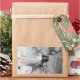 Um postal de Natal francês vintage do dominio público. Ele apresenta uma garota vestida de presentes de carregando anjo de Natal.