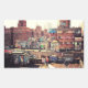 Grafite cobrir os telhados dos prédios de apartamentos em Chinatown. A roupa pendura das linhas de lavanderia ao sol nesta espetacular paisagem de Nova Iorque.