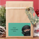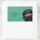O adorável chubby, mas assustador, pequeno ninja está vestido de roupa preta e carregando katana - espada tradicional japonesa.