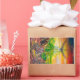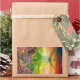 Pintura acrílica colorida e vibrante em verde, amarelo alaranjado, roxo, castanho vermelho, cores brancas de 2009, Duelo entre Bradamant e Negromcer em seu grifão com asas enormes. Orlando Furioso, Canto 2 escrito pelo poeta Renascentista italiano Ludovico Ariosto 1516 .