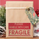 Manípulo vermelho e marrom com cuidado, sinal frágil