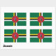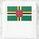 Vinhetas retangulares com bandeira da Commonwealth de Dominica, bandeira verde listras amarelas, pretas e brancas com emblema nacional com o papagaio sisserou no centro