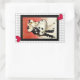 A popularidade da pantomima no final dos anos 1980 provocou o ressurgimento do triste palhaço Pierrot. Aqui está um adesivo retangular que combina o nosso convite à "Mascarada de Pierrot" com uma imagem de uma cinza e de um tabuleiro branco e uma imagem vintage de Pierrot mascarado e do seu amor Columbine num fundo abstrato branco e vermelho com uma fronteira preta. Consulte o convite correspondente, envelope, etiqueta de presente, etiqueta e papel de embalagem. Veja toda a coleção Tubular 80s Sticker nos CONVITES | Seção Stickers & Labels