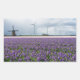 Fotoadesivo de Souvenir de uma paisagem com um moinho de vento tradicional e vários moinhos de vento modernos para gerar energia verde atrás de um campo com flor púrpura de hífen na região de Bulb, na Holanda.