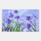 Vinhetas com o óleo de Claude Monet a pintar as irrises liláticas (1914-1917). Lindas flores roxas num mar de verde. Paisagem serena. Um presente de Monet excelente para fãs do impressionismo e da arte francesa.