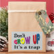 Não cresça, é uma ilustração de armadilha com letras coloridas