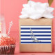 Um cromo prateado como design de barco a vela regata em um decor de listras azuis marinho. Um presente náutico moderno.