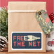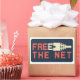 Liberte a rede para um maior acesso para todos. Como? Por conexões de fazer rápidas e gratuitas. Gráfico do conector Ethernet RJ45 incorporado na mensagem: FREE A NET. Legal skateboard e adesivo de garrafa d'água para surfistas de Internet que amam wifi.