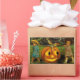A lua estava baixa no céu, lançando um brilho sinistro sobre a fazenda adormecida. Dois jovens agricultores, seus rostos iluminados pelo luar, estavam de pé, seus ombros esticados sob o peso de uma abóbora colossal e sorridente. A abóbora, maior do que qualquer uma que já haviam visto, parecia irradiar uma vida travessa própria. - Uma velha coruja sábia estava empoleirada no caule da abóbora, seus olhos perspicazes observando a cena com silenciosa aprovação. Um gato preto e elegante, uma sombra ronronante, seguia de perto as crianças, seus olhos fixos no fruto gigante. - Enquanto as crianças levavam sua colheita extraordinária em direção à casa da fazenda, o largo sorriso da abóbora parecia crescer ainda mais, seus olhos cintilando com uma luz misteriosa. Era como se a abóbora, a coruja e o gato fizessem parte de uma noite secreta e mágica, uma noite de Halloween diferente de qualquer outra. - Esta obra de 1900-