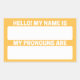 Adesivo Retangular Nome Amarelo e Rótulos Pronoun