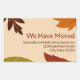 Laranja, marrom, vermelho escuro e folhas verdes de queda estão neste adesivo de anúncio em movimento. Já nos Movemos acima de três linhas de texto castanho escuro. Você pode editar o texto para mostrar o(s) nome(s) correto(s) e seu novo endereço.