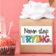 Inspire-se com nosso adesivo retangular "Nunca Pare de Tentar"! Perfeito para decorar laptop, garrafas de água e muito mais. Mantenha-o onde precisar de uma motivação.