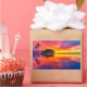 Esta foto apresenta nuvens coloridas no pôr do sol com reflexo, praia de Wailea com palmeiras, Maui, Havaí.