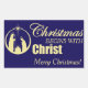 A característica deste adesivo temido pela fé é um simples dentro de cena da natividade da silhueta com um círculo com a Estrela de Belém acima, e o texto estilizado que diz "O Natal Começa com o Cristo". Tudo é ouro brilhante, e colocado sobre fundo azul escuro.