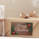 Este adesivo de Natal da empresa clássica apresenta uma elegante tipografia cursiva branca sobre uma bela fotografia de férias. A foto apresenta enfeites vermelhos e conchas verdes junto a um chão de madeira. Esta etiqueta de presente de Natal corporativo em escala superior apresenta o seu nome de negócio no dentro de mensagens da empresa frontal e personalizada.