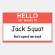 Adesivo Retangular Olá Meu nome é Jack Squat Não espere muito