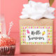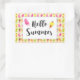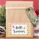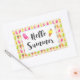 Um adesivo com uma imagem de um padrão de tempo de Verão de picolés e sorvetes em aquarelas. Olá Summer escreveu em uma fonte de tendências divertida.