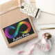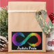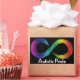 Texto do Orgulho Autista com o logotipo infinito da neurodiversidade arco-íris.