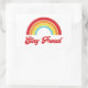 Vintage inspirou o design orgulho gay do arco-íris com palavras "fique orgulhoso" em uma letra vermelha de script retrô.