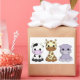 Estes vaca, hipopótamo e girafa são caráteres realmente bonitos e amigáveis. Olham adoráveis com seus olhos roxos grandes. Couberam agradàvel junto nesta etiqueta.