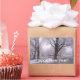 Foto de um caminho que leva a uma paisagem fosco de inverno. Texto: Feliz ano novo!