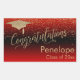 Adesivo Retangular Parabéns Dourado Vermelho para Graduação de Confet