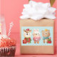 Os palitos com uma ilustração fofinha, com um coelho, um urso e um veado, todos vestidos com artes festivas. Adorável e caprichoso.