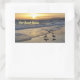 Os pássaros-da-praia brincam no surf enquanto o sol se põe nas montanhas da Califórnia. Edite o texto para adicionar seu nome de família, nome da casa de praia ou frase favorita, ou simplesmente exclua o texto. A caixa de madeira fica sozinha ou você pode pendurá-la.