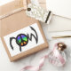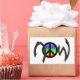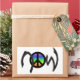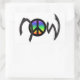 Uma peça do logo para uma linha popular de roupas cristãs, este gráfico clama "PEACE NOW" com a cor de um arco-íris.