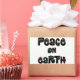 Gráfico temático de Natal bonito e significativo com sinais de paz vermelhos e verdes acentuados em cada carta. Desejando paz na Terra... no Natal e no dia a dia.