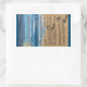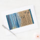 Uma pintura de uma praia com pegadas e pegadas poéticas na areia.