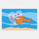 Ilustração de desenho animado de peixe apaixonado pela isca do verme no gancho.