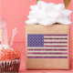 Este design patriótico apresenta a bandeira dos Estados Unidos em cores antigas com toda a fidelidade ao longo das listras vermelhas.