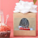 Foto doce de uma porquinha-pintada bonitinha segurando um chapéu de Papai Noel com desejos de um "Feliz Natal", que aparece neste adesivo de Natal. Use aquela correspondência especial, decoração ou artesanato!